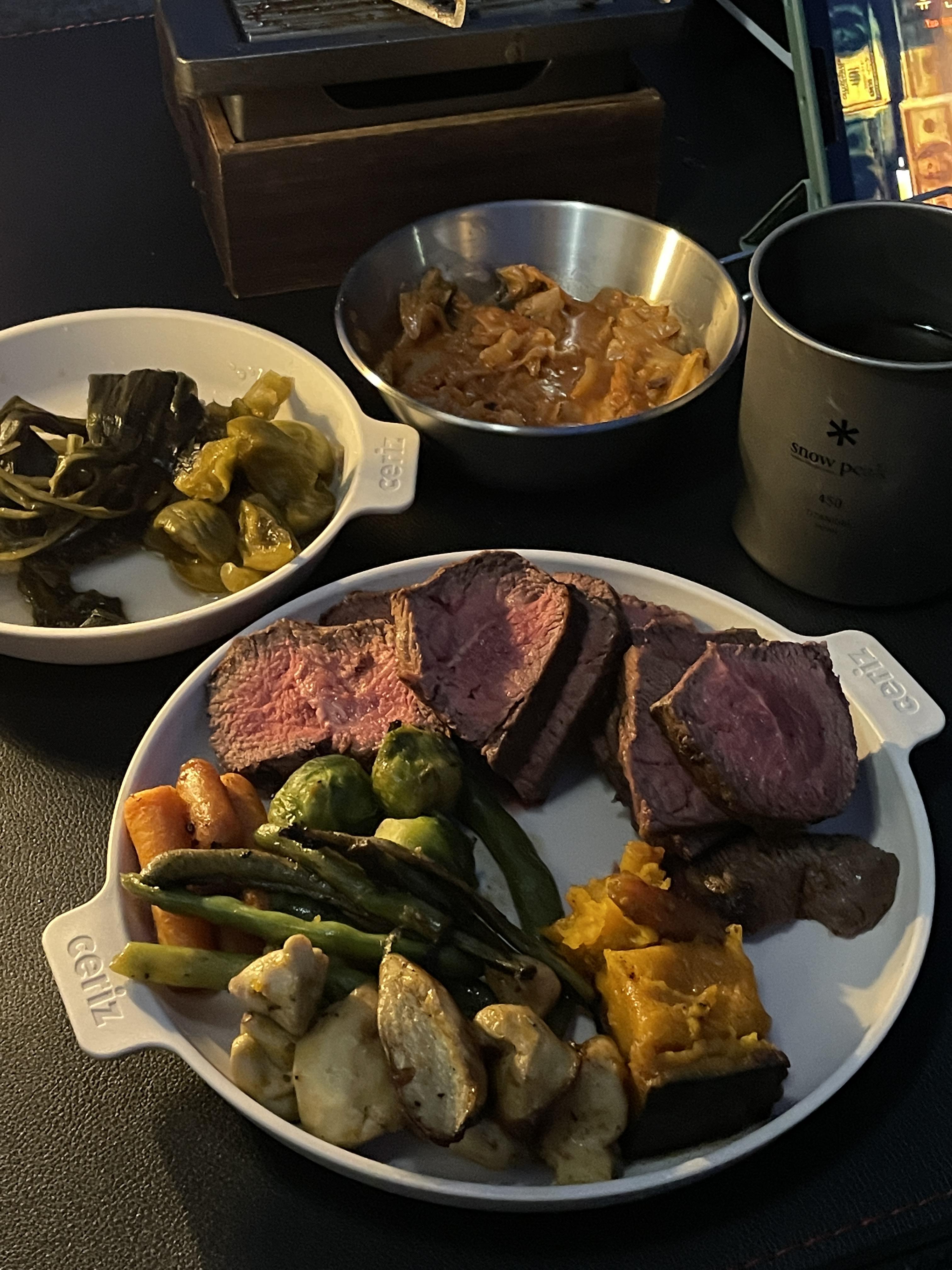 플레이팅은 엉망이지만 그래도 아주아주 맛있게 먹었던 스테이크입니다. 스테이크 굽기 위해 특별한 용품을 쓴 건 아니고 구이바다를 이용해서 구웠어요!