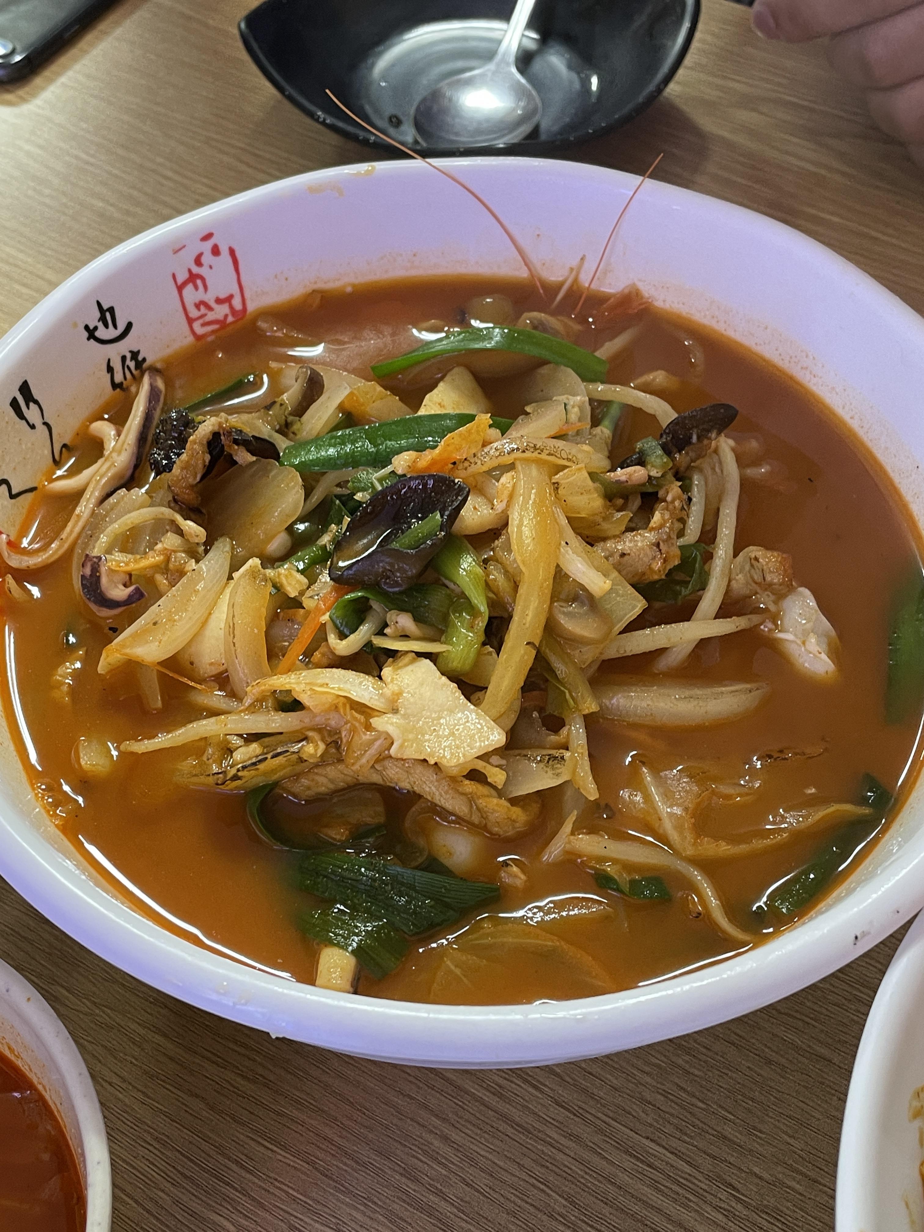 울릉도는 홍따밥, 오징어내장탕, 따개비칼국수, 꽁치물회, 약소불고기 다양한 음식들이 유명하잖아요~ 하지만 속세의 맛(?)이 생각날 즈음에 ㅎㅎ 가보세요. 특별한 맛은 아니어도 가득한 해물에 행복해진답니다.