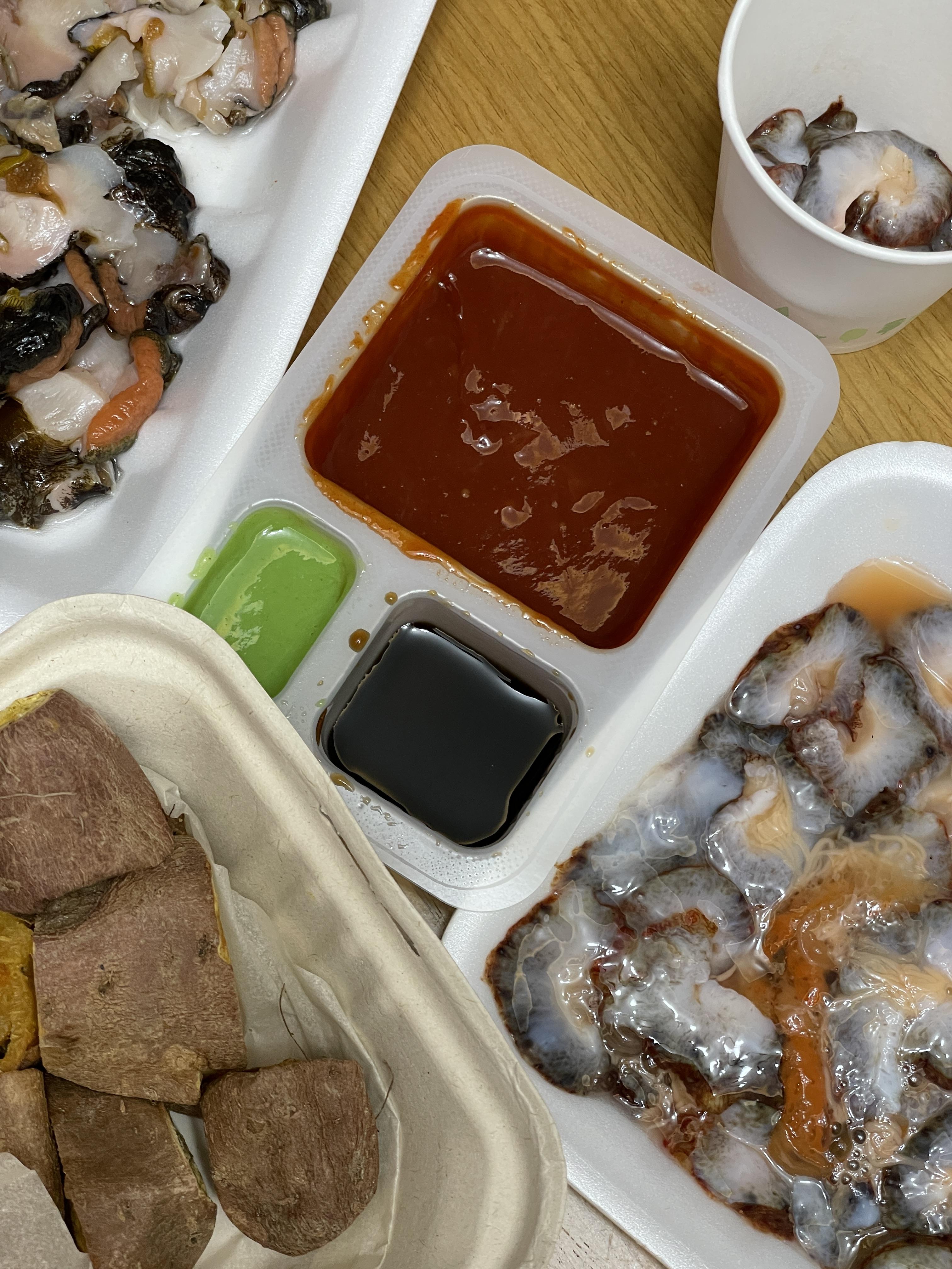 처음에 오징어가 없는 줄 알고 홍해삼과 뿔소라를