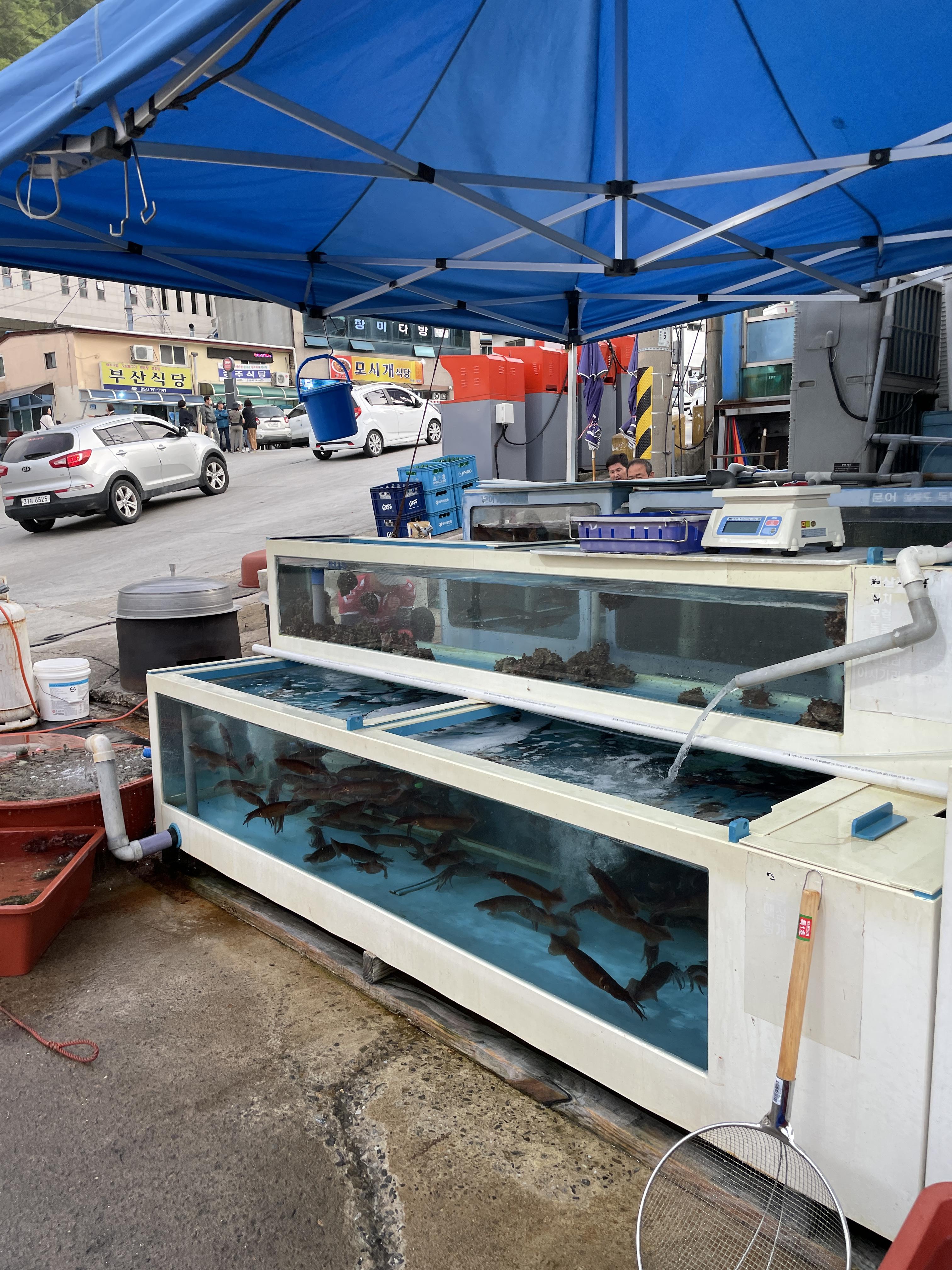 주인아주머니께 여쭤보니 오징어 금어기가 어제 풀렸다고 하더라구요. (5월 22일 기준) 오징어도 있었지만 구매는 안 했어요. 금어기가 풀렸으니, 오징어회 드실 분은 오징어회센타로 가보세용!!