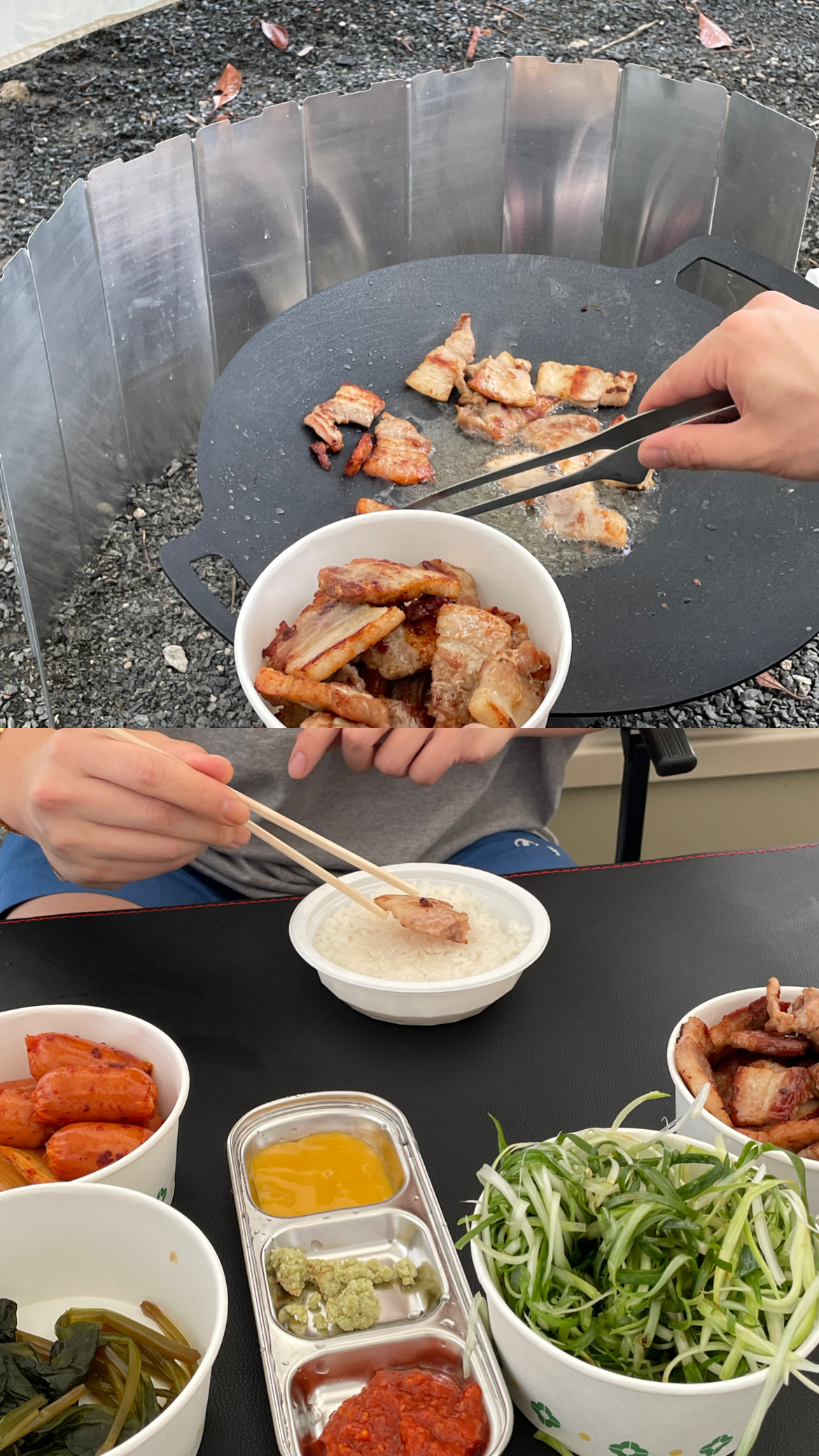 캠핑 왔으면.. 삼겹살은 먹어줘야죠 ㅎㅎ