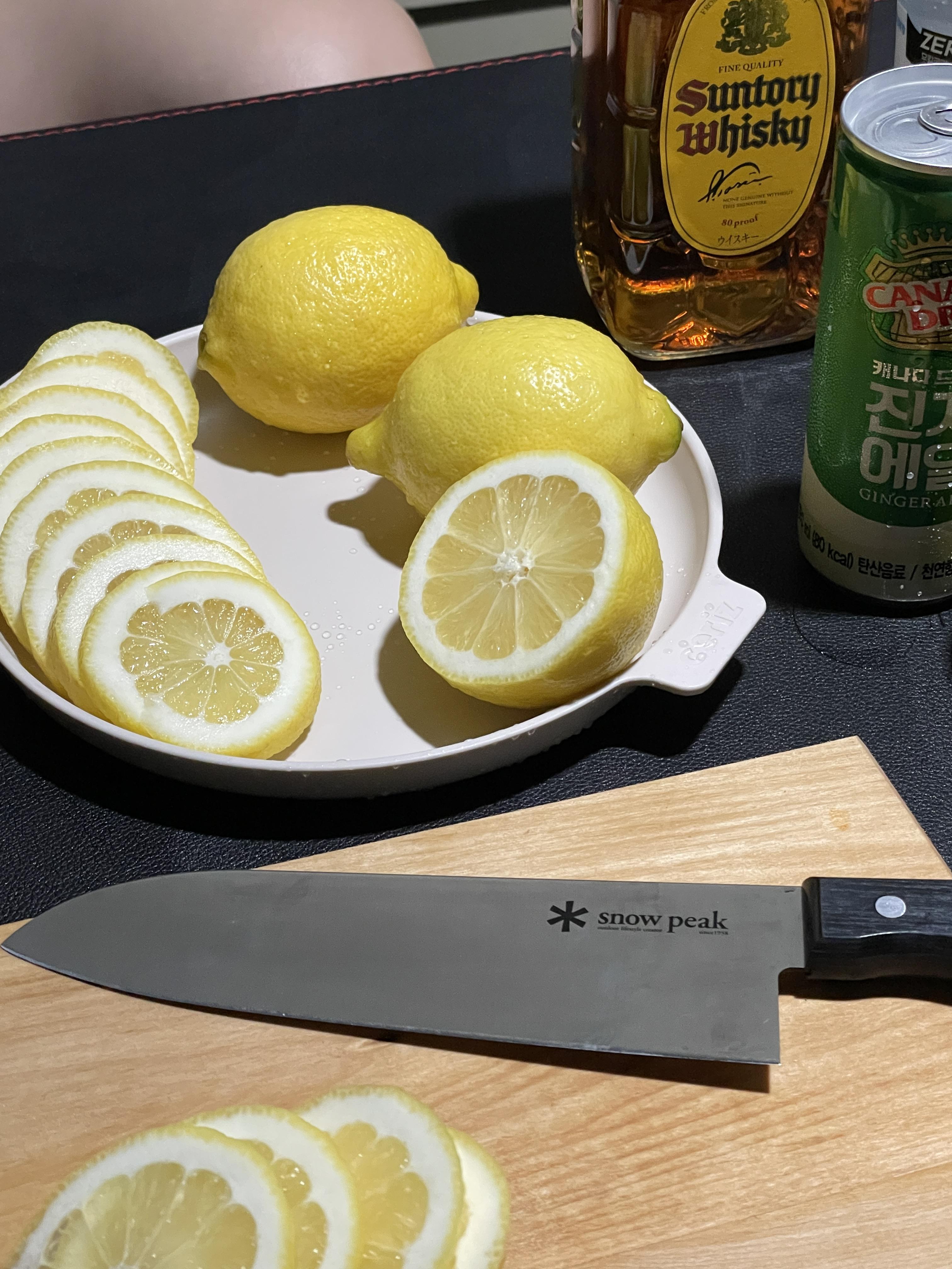 저는 술을 잘 못 마시는데 남자친구가 만들어 준 하이볼을 정말 정말 좋아해요 ㅎㅎ 레몬을 함께 넣어 먹으면 레몬음료수 같거든요. 술술 들어가는 맛~~